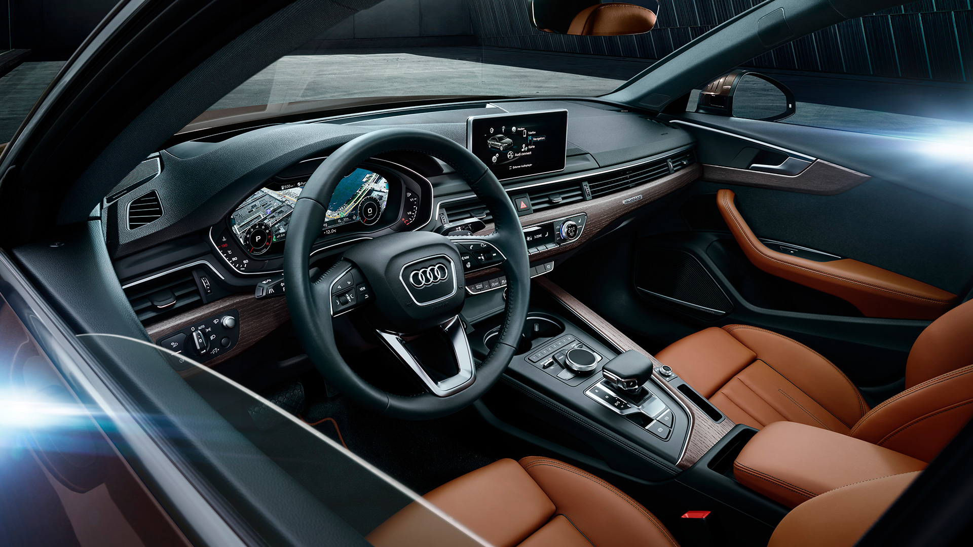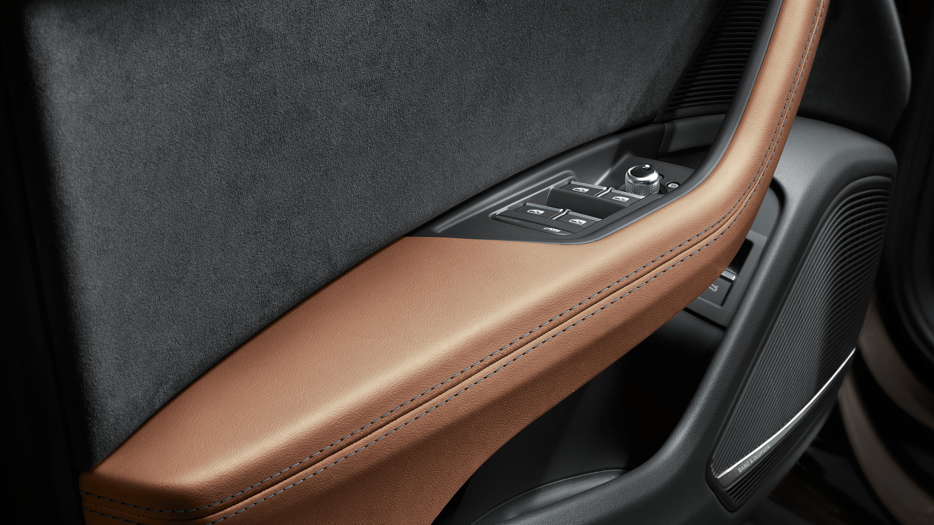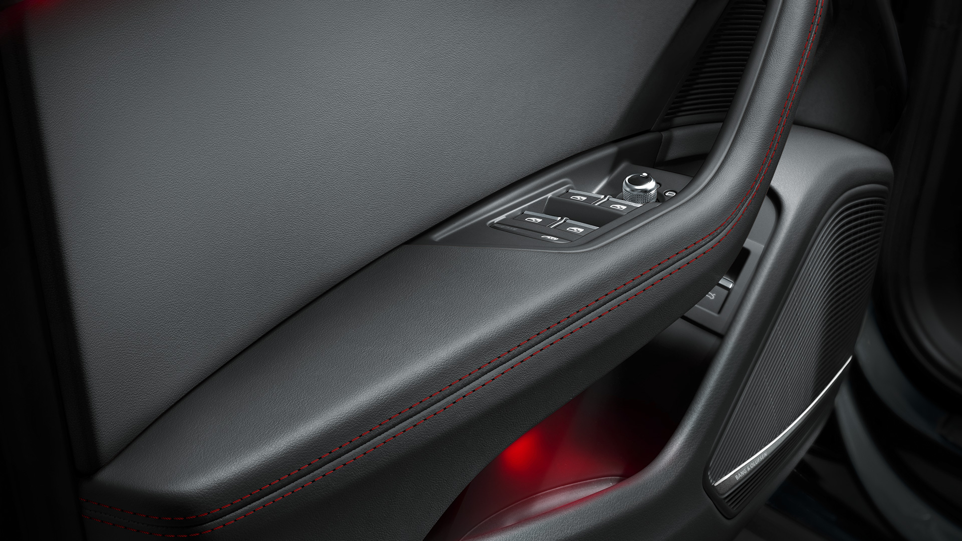 Для ефектного контурного підсвічування панелей дверей використовуються тонкі світловоди, що освітлюються окремими світлодіодами. Колірна палітра інтер'єру включає багато нових відтінків та їх комбінацій. У пакетах design та Audi design selection передбачена можливість двоколірного оформлення передньої панелі. Для темної верхньої частини панелі доступні кольори Black і Granit Grey, а світліша нижня частина пропонується у кольорах Atlas Beige, Rock Grey та Black.