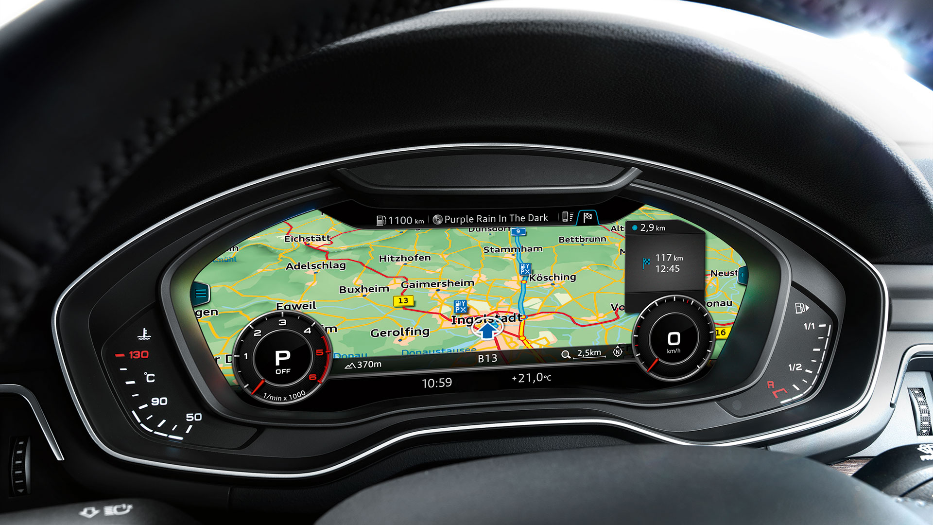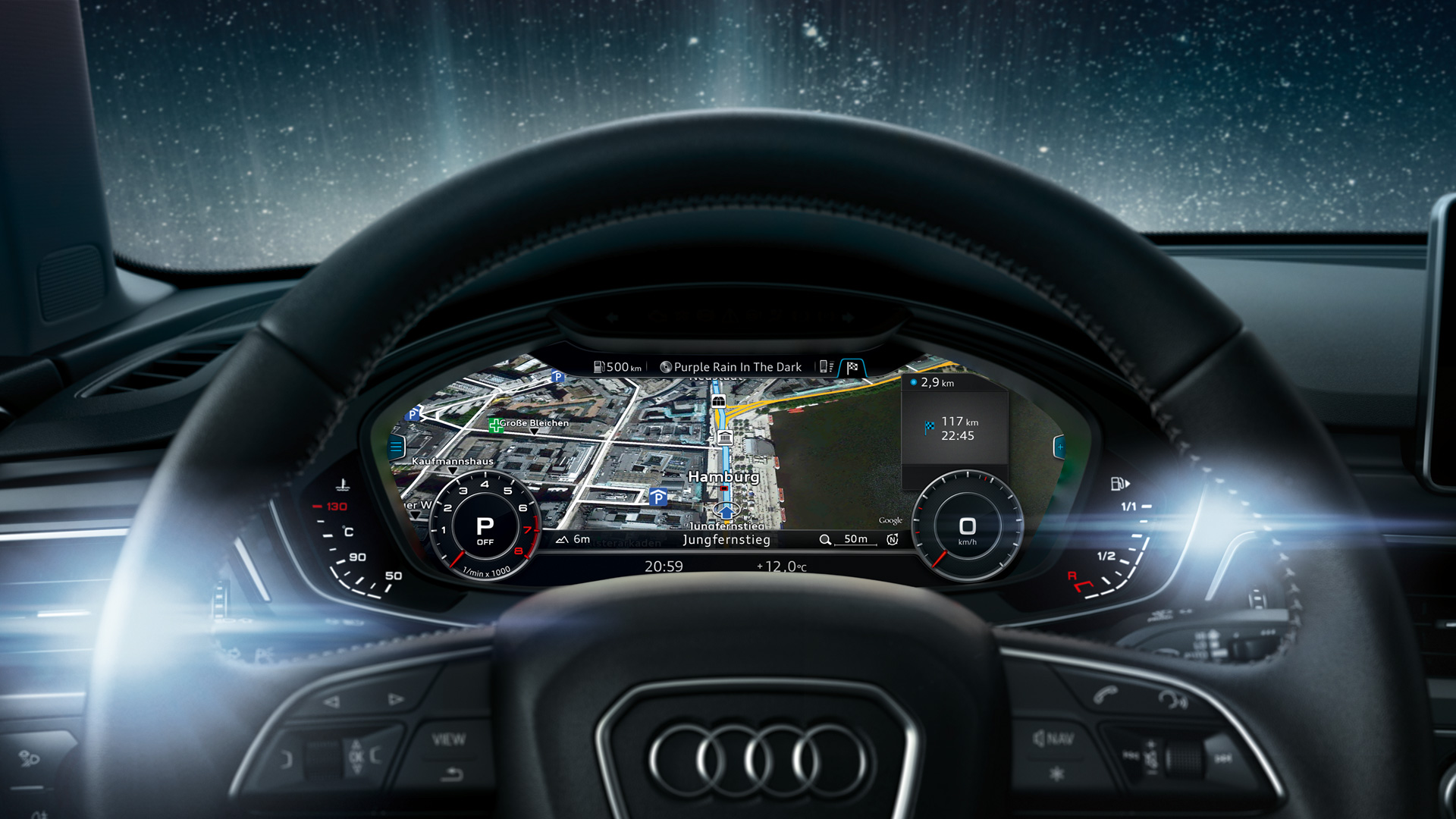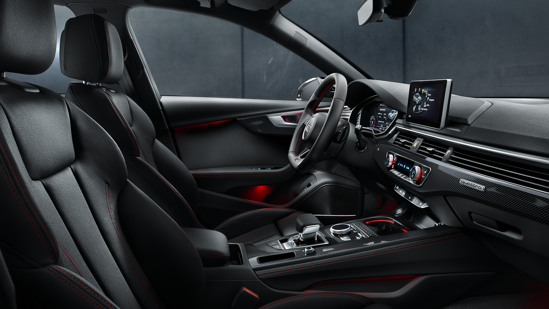 Для ефектного контурного підсвічування панелей дверей використовуються тонкі світловоди, що освітлюються окремими світлодіодами. Колірна палітра інтер'єру включає багато нових відтінків та їх комбінацій. У пакетах design та Audi design selection передбачена можливість двоколірного оформлення передньої панелі. Для темної верхньої частини панелі доступні кольори Black і Granit Grey, а світліша нижня частина пропонується у кольорах Atlas Beige, Rock Grey та Black.