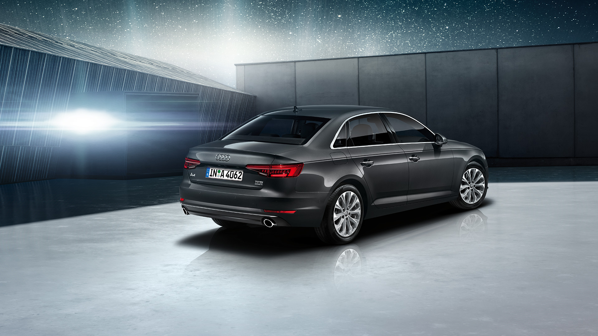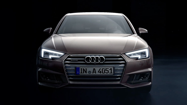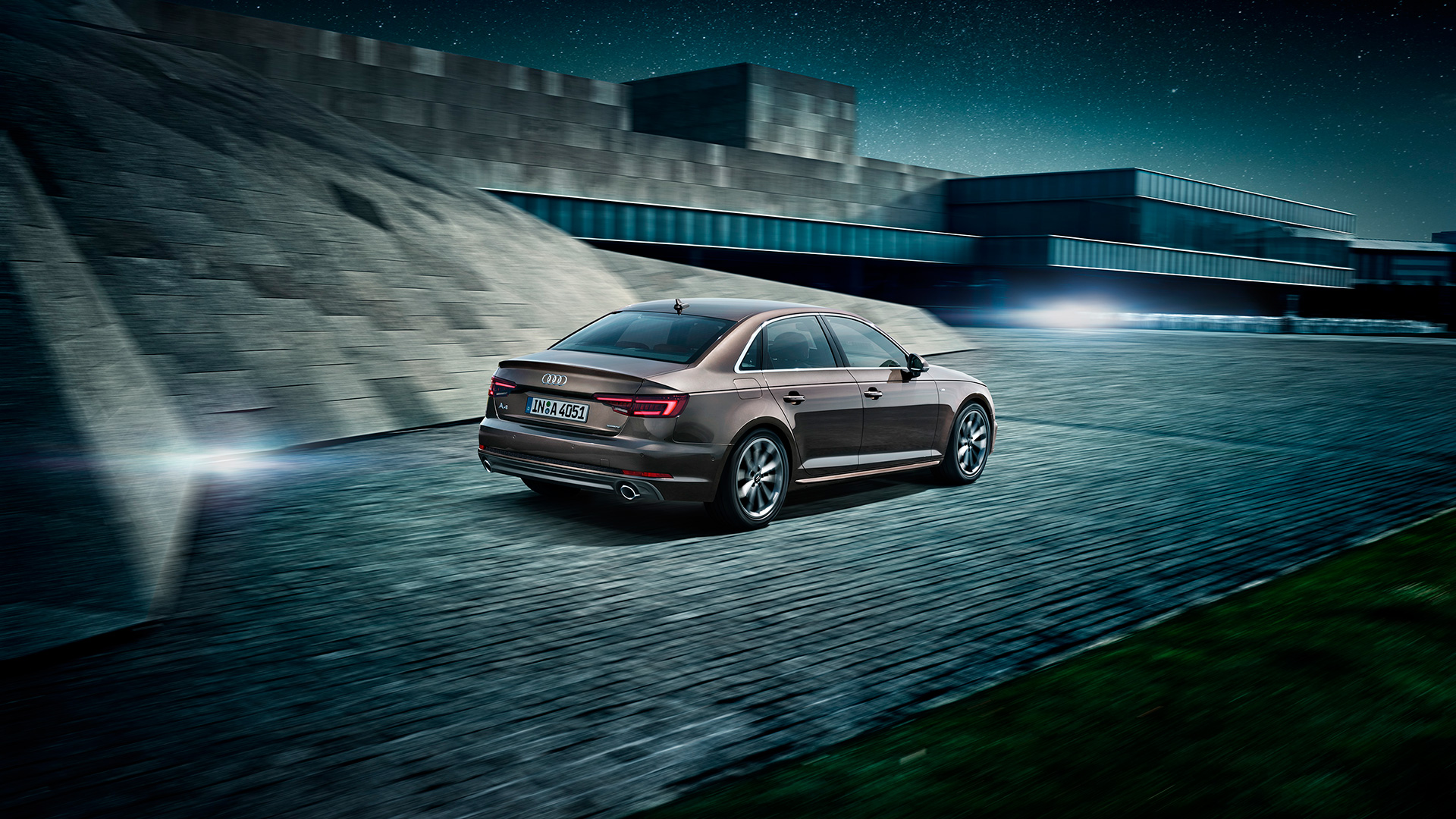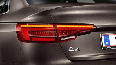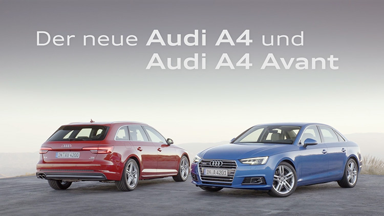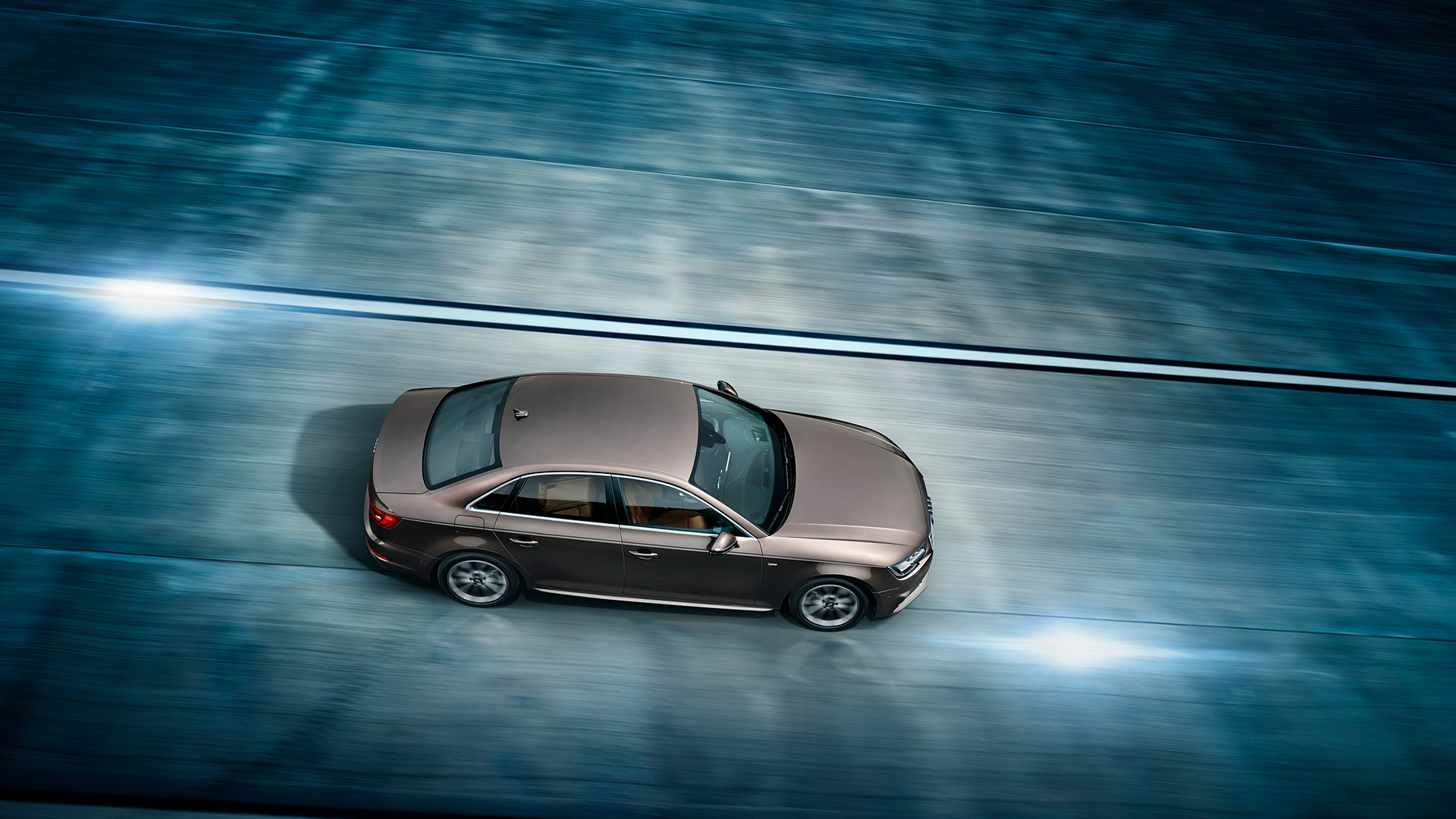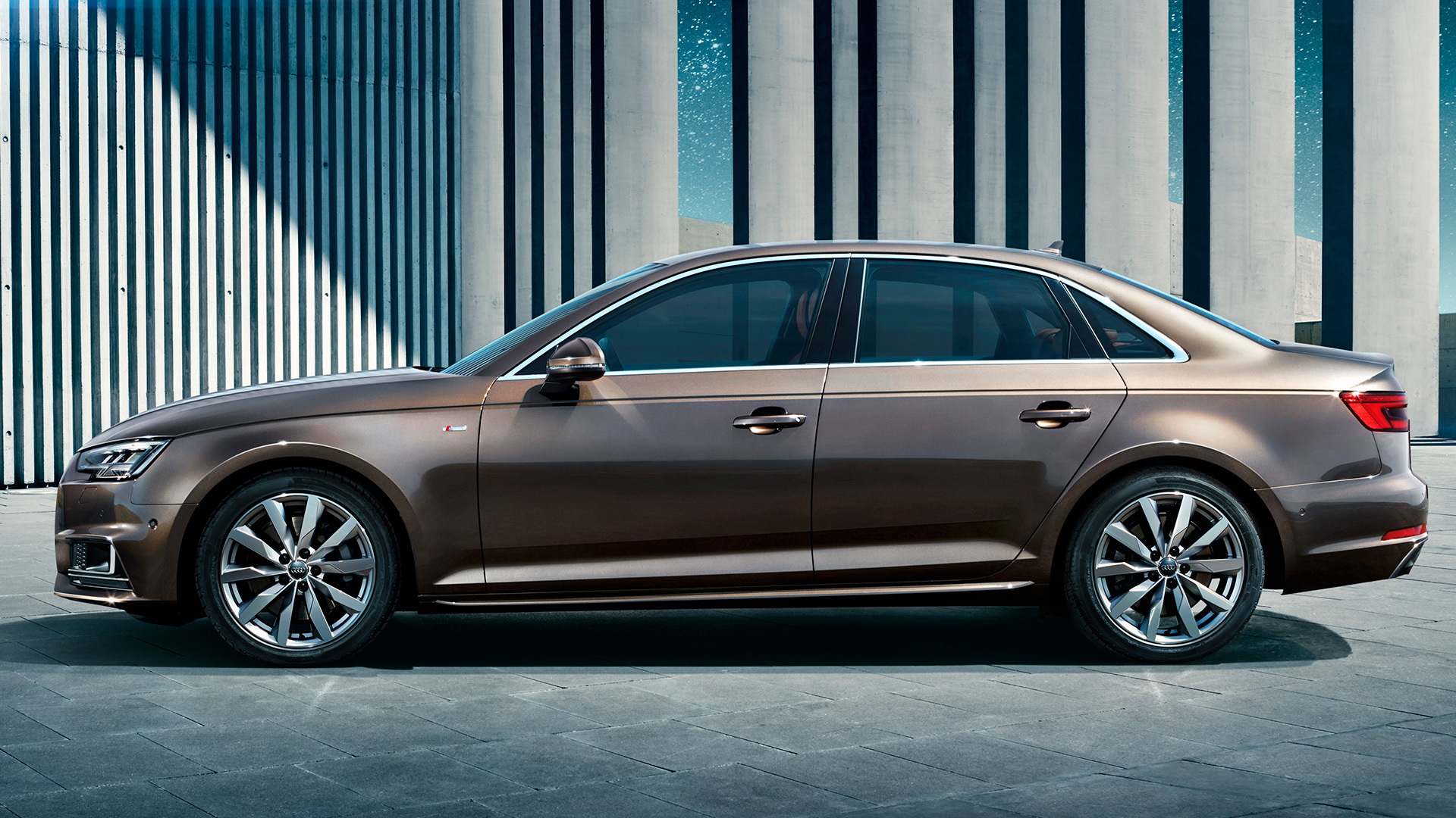 У профіль новий Audi A4 виглядає по-спортивному витягнутим, капот огортає верхні краї крил. Плечова лінія починається від кутів фар і своєрідною дугою проходить до задньої частини, охоплюючи її. Виразна заглибина уздовж цієї лінії викликає інтенсивну гру світла і тіні на бічних поверхнях автомобіля.