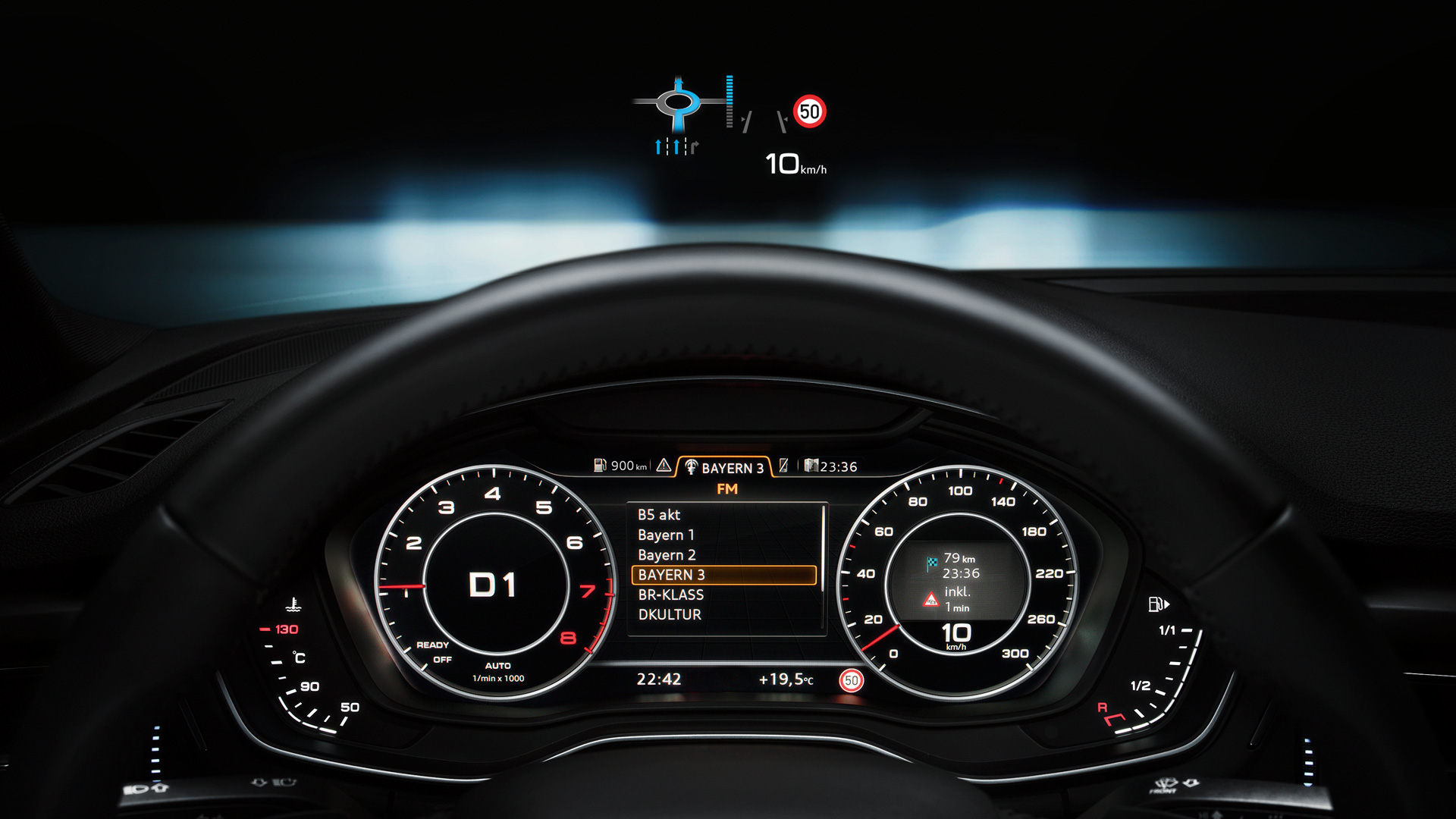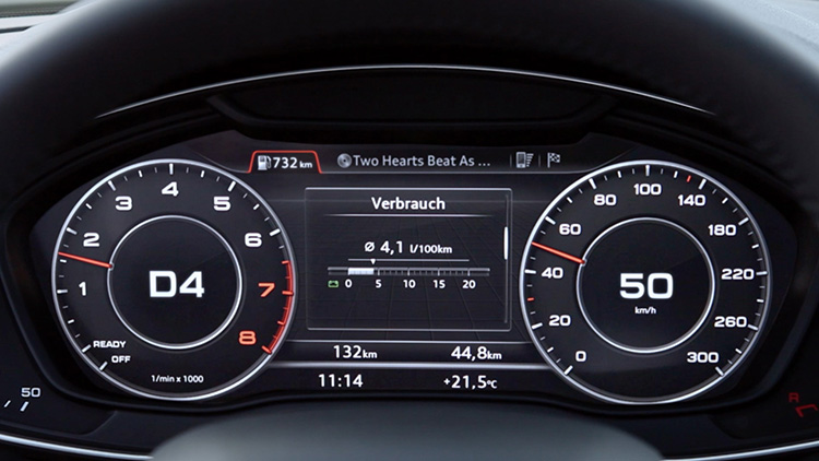У системі вищого рівня є можливість окремого налаштування кольору освітлення у різних зонах салону через інтерфейс системи MMI шляхом вибору передбачених для цього численних профілів. Кольори залежать від активного режиму системи Audi drive select.