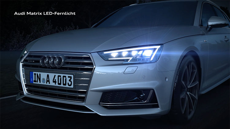 У світлодіодних фарах Audi Matrix пучок дальнього світла формує система з трьох рефлекторів і 12 світлодіодів. Окремі світлодіоди вмикаються і вимикаються залежно від ситуації (доступно 64 градації яскравості). Така система за будь-яких умов забезпечує оптимальне освітлення дороги зі спектром, подібним до денного світла, і запобігає засліпленню інших учасників дорожнього руху. Освітлення поворотів здійснюється шляхом зміщення світлового центру світлодіодних фар Audi Matrix. Медіасистема MMI Navigation plus (опція) заздалегідь опрацьовує дані щодо маршруту, тому функція освітлення повороту активується ще до зміни положення керма. Динамічні покажчики повороту виконані у формі стрічки зі світлодіодів, що послідовно вмикаються і вимикаються, інформуючи таким чином про напрямок руху у добре зрозумілий спосіб.