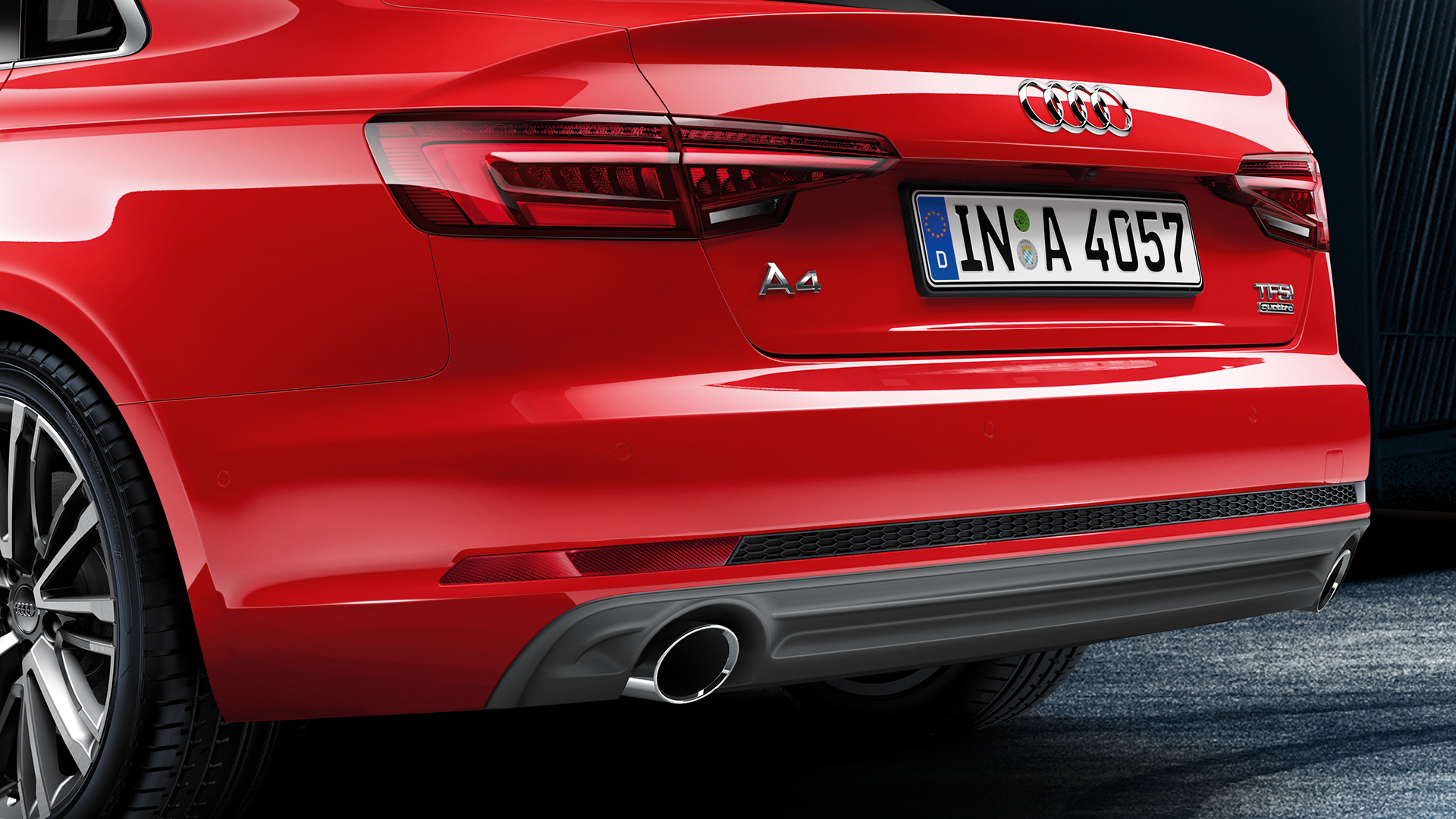 Кришку багажного відсіку завершує чітко окреслена кромка. Дизайн дифузора залежить від типу двигуна. Перелік можливих варіантів включає одну вихлопну трубу, спарену вихлопну трубу (для двигунів TDI потужністю від 190 к.с.) або дві спарені вихлопні труби (для двигунів TFSI потужністю від 190 к.с.), що у комплектаціях design і sport та у моделях з двигуном 3.0 TDI оздоблюються хромованими патрубками.